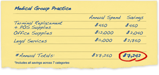 The estimates used to construct the Medical Practice Group savings example were based on interviews with the owner and bookkeeper of a medical practice group specializing in ophthalmology in a major U.S. city in the Southeast, with a small retail frame and sunglasses shop connected to the practice. The group employs 2 full-time and 1 part-time physician, plus an additional 19 full and part-time employees.